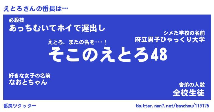 | ヘコむあだ名 | 『えとふぇ~』『豆乳』『えと太郎』 |