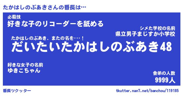 | 伝説のあだ名 | 『不死鳥のスナイパーたかはしのぶあき』 |
