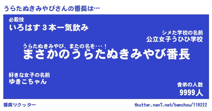 | ヘコむあだ名 | 『うらにー』『なまこ酢』『うらお』 |