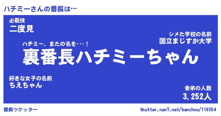 | 2回繰り返すあだ名 | 『ハチハチ』『ハハチチ』『ぬめぬめ』 |