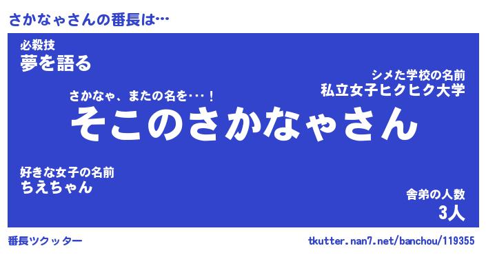 | 意味不明あだ名 | 『ペロリンさかなゃ』『永久保存さかなゃ』 |
