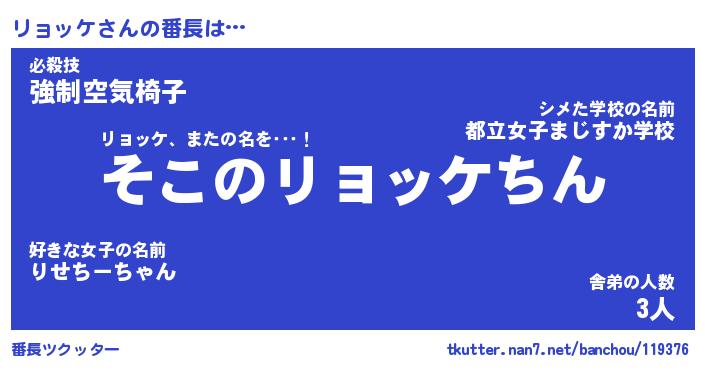 | 男性向けラノベタイトル風あだ名 | 『リョッケの憂鬱』 |