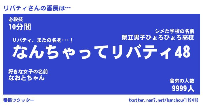 | 意味不明あだ名 | 『ペロリンリバティ』『永久保存リバティ』 |