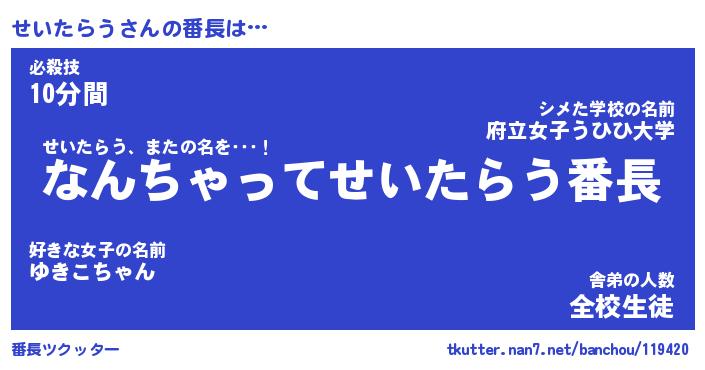 | 肩書あだ名 | 『せいたらう店長』『せいたらう総理大臣』 |