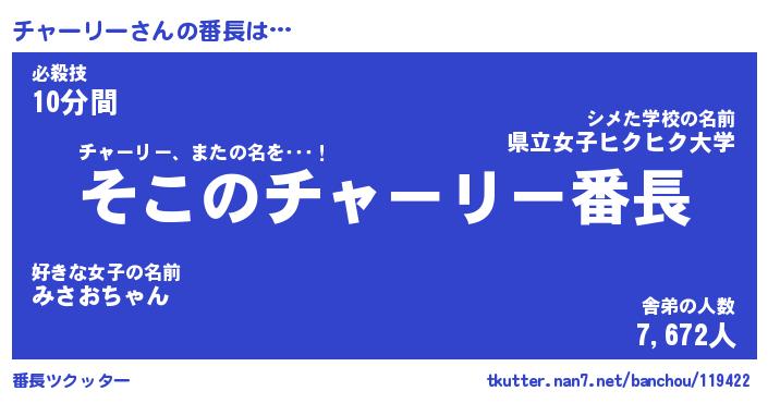 | ヒーロー風カッコイイあだ名 | 『スーパーチャーリー』『炎刃騎士チャ』 |