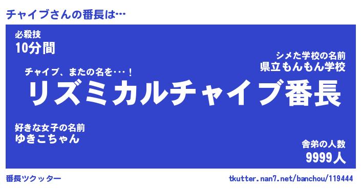 | ファンタジー風あだ名 | 『チャフェル』『エターナルチャイブー』 |