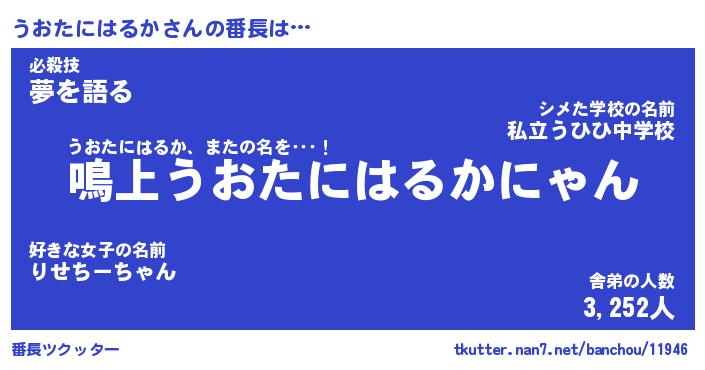 | 伝説のあだ名 | 『封印されし竜騎士うおたにはるか』 |