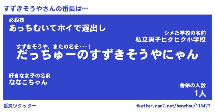 | 肩書あだ名 | 『すずきそうや店長』『すずきそうや団長』 |