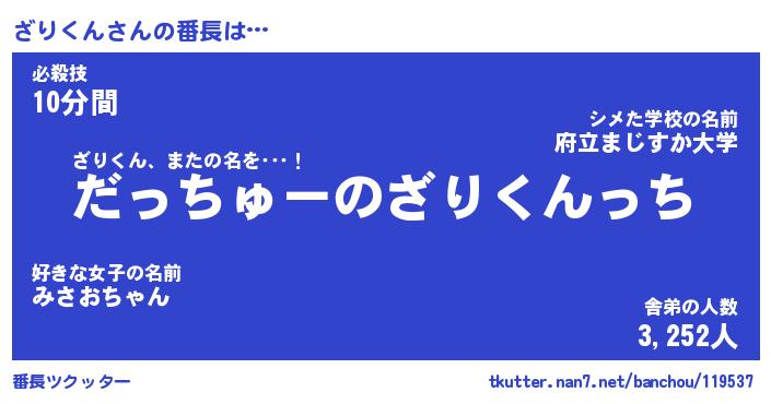 | 肩書あだ名 | 『ざりくん御曹司』『ざりくん大統領』 |