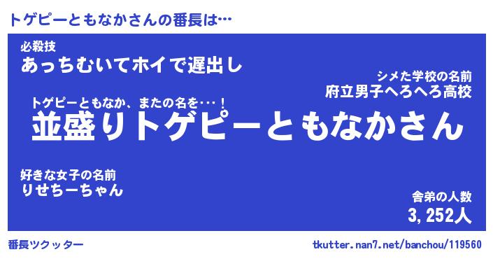 | ピコ太郎風あだ名 | 『トコ六郎』『ピト六郎』『トゲ次郎』 |