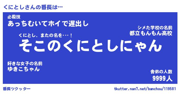 | ヒーロー風カッコイイあだ名 | 『スーパークニトシ』『天弓騎士クニ』 |