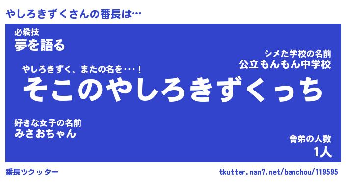 | 男性向けラノベタイトル風あだ名 | 『やしろきずくの憂鬱』 |