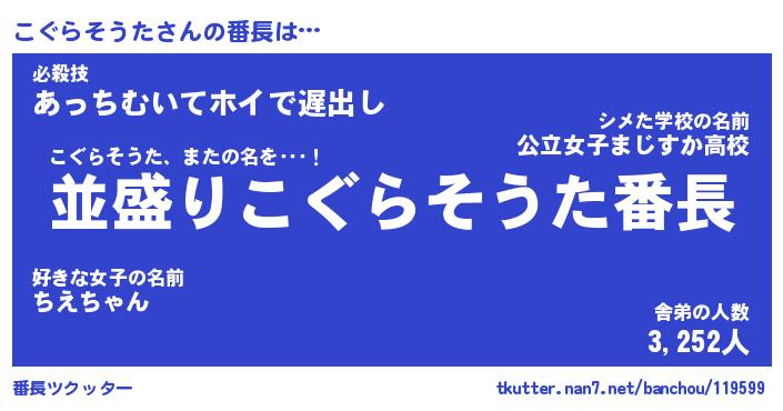 | 伝説のあだ名 | 『不死鳥のスナイパーこぐらそうた』 |