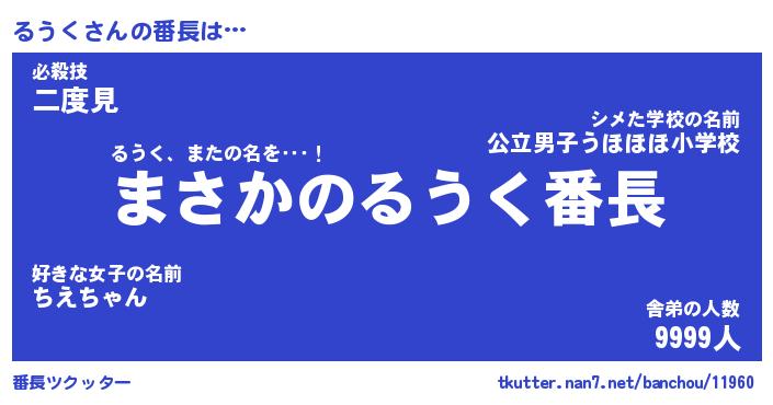 | 伝説のあだ名 | 『伝説のスナイパーるうく』 |