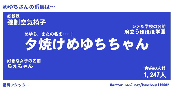 | 意味不明あだ名 | 『ペロリンめゆち』『めゆちフォーエバー』 |