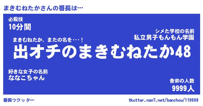 | 男性向けラノベタイトル風あだ名 | 『まきむねたかの憂鬱』 |
