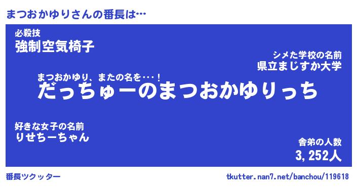 | 肩書あだ名 | 『まつおかゆりCEO』『まつおかゆり大統領』 |