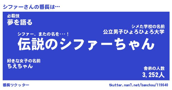 | 意味不明あだ名 | 『ペロリンシファー』『永久保存シファー』 |