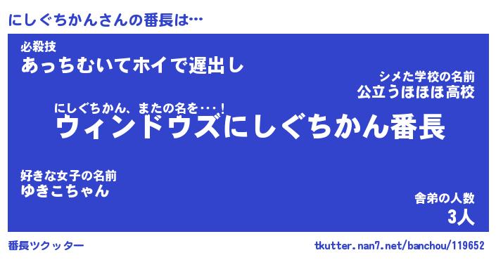 | 肩書あだ名 | 『にしぐちかん御曹司』 |