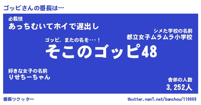 | 意味不明あだ名 | 『ペロリンゴッピ』『ゴッピフォーエバー』 |