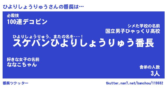 | ヒーロー風カッコイイあだ名 | 『スーパーヒヨリショウリュウ』 |