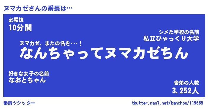 | ファンタジー風あだ名 | 『ヌマフェル』『エターナルヌマカゼー』 |