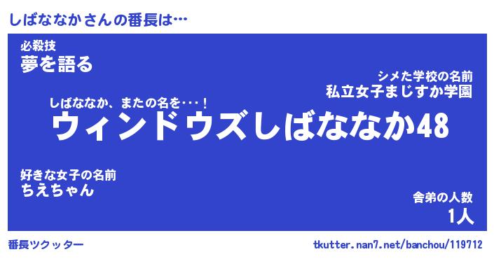 | ファンタジー風あだ名 | 『シバフェル』『エターナルシバナナカー』 |