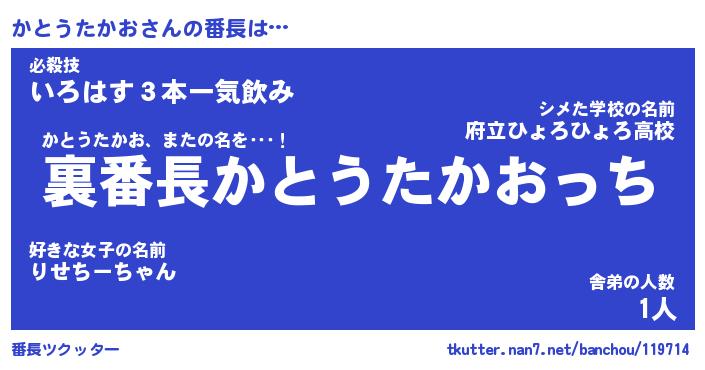 | ヘコむあだ名 | 『かとっふぃ~』『なまこ酢』 |