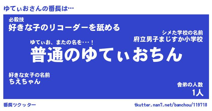 | 肩書あだ名 | 『ゆてぃお社長』『ゆてぃお総理大臣』 |