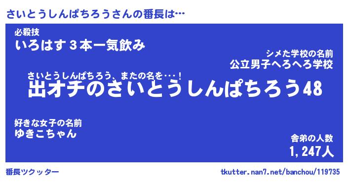 | 肩書あだ名 | 『さいとうしんぱちろう店長』 |