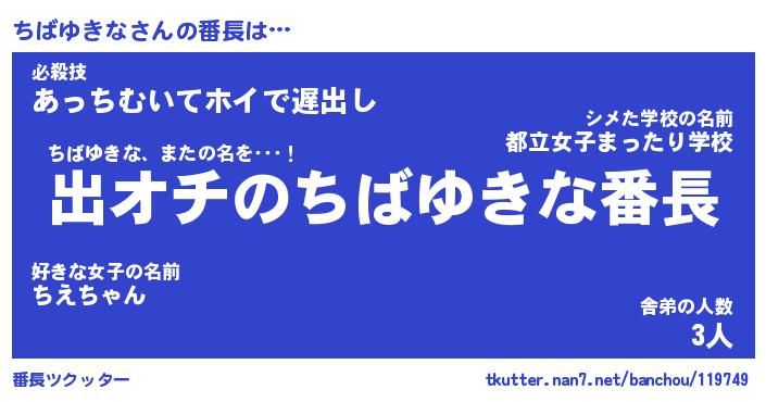 | ファンタジー風あだ名 | 『チバフェル』『エターナルチバユキナー』 |