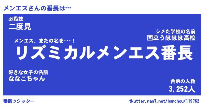 | 意味不明あだ名 | 『ペロリンメンエス』『永久保存メンエス』 |
