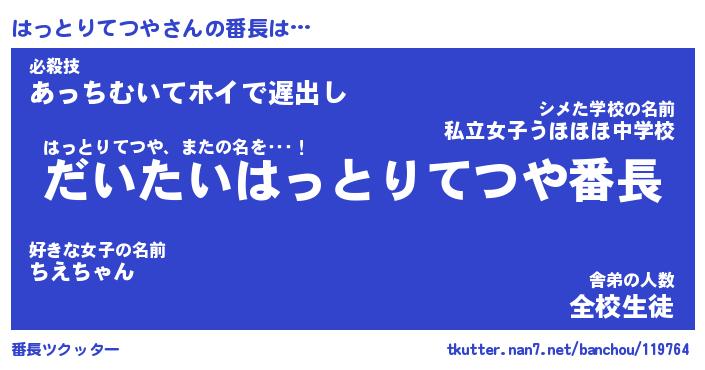 | 男性向けラノベタイトル風あだ名 | 『はっとりてつやの憂鬱』 |