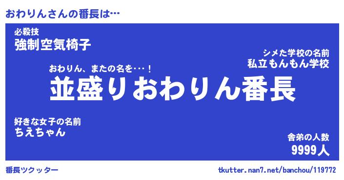 | 肩書あだ名 | 『おわりん御曹司』『おわりん大統領』 |