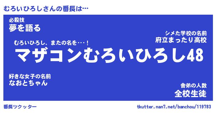 | 肩書あだ名 | 『むろいひろし御曹司』 |