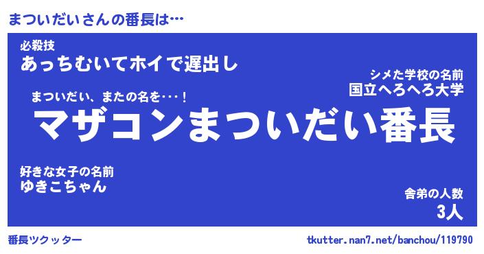 | 肩書あだ名 | 『まついだい御曹司』『まついだい班長』 |