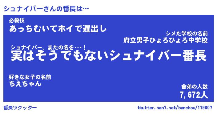| 男性向けラノベタイトル風あだ名 | 『シュナイバーアートオンライン』 |