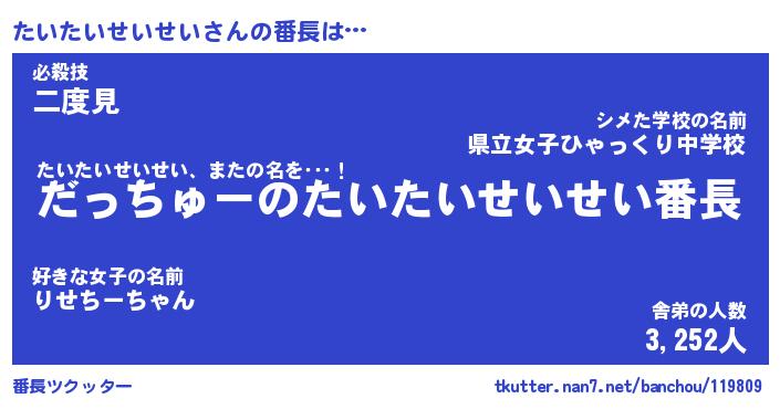 | 2回繰り返すあだ名 | 『たいたい』『たたいい』『ぬぷぬぷ』 |