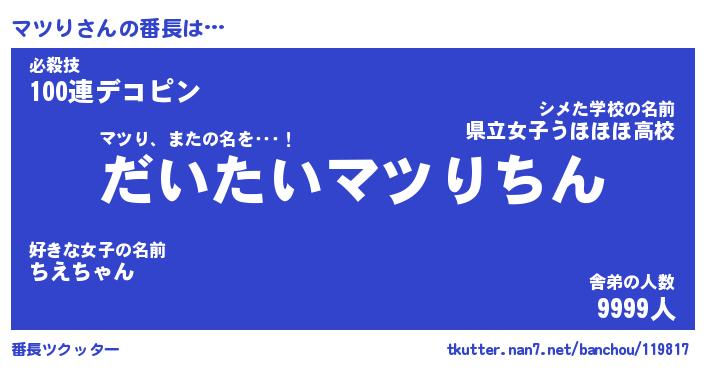 | ヒーロー風カッコイイあだ名 | 『スーパーマツリ』『ウルトラマツりマン』 |