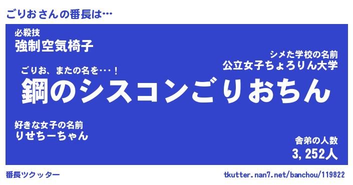 | 意味不明あだ名 | 『ペロリンごりお』『ごりおフォーエバー』 |