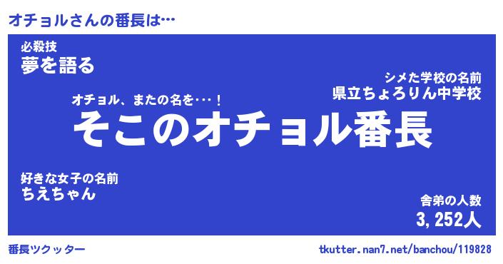 | 意味不明あだ名 | 『ペロリンオチョル』『永久保存オチョル』 |
