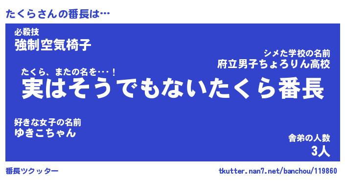 | 2回繰り返すあだ名 | 『たくたく』『たたくく』『おたおた』 |