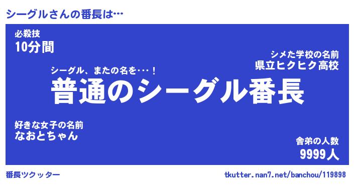 | ヒーロー風カッコイイあだ名 | 『スーパーシーグル』『天弓騎士シー』 |
