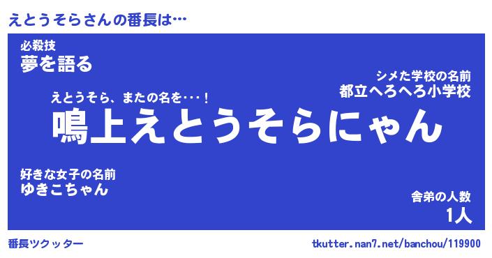| ヒーロー風カッコイイあだ名 | 『スーパーエトウソラ』『黄金騎士エト』 |