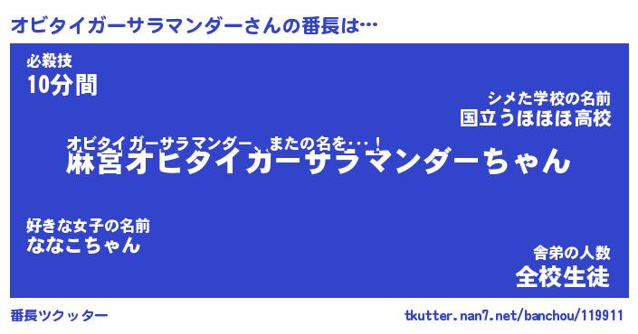 | ツイッター | オビタイガーサラマンダーさんのツイッターID『dendenmushi_kun』 |
