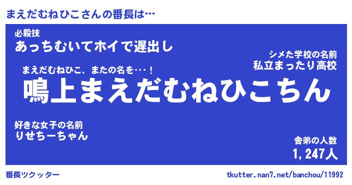 | ヘコむあだ名 | 『まえにゅー』『豆乳』『まえぷりん』 |