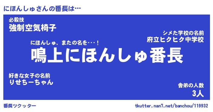 | ヒーロー風カッコイイあだ名 | 『スーパーニホンシュ』『暗黒騎士ニホ』 |