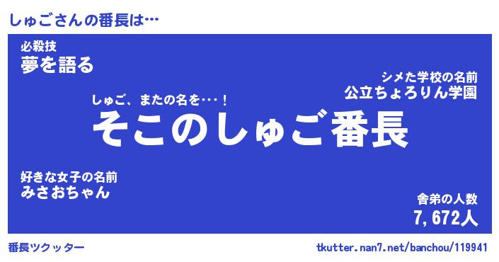 | 伝説のあだ名 | 『不死鳥のスナイパーしゅご』 |