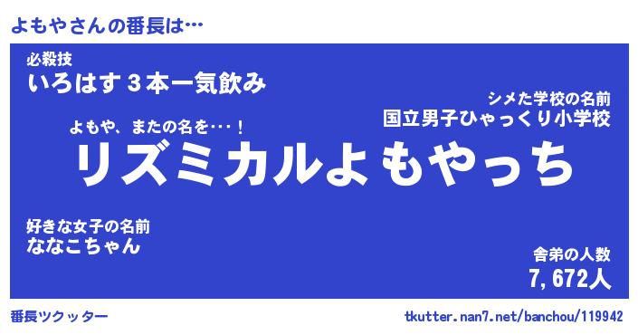 | ヒーロー風カッコイイあだ名 | 『スーパーヨモヤ』『ウルトラよもやマン』 |