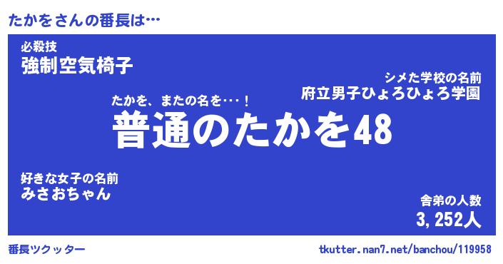 | 意味不明あだ名 | 『ペロリンたかを』『たかをフォーエバー』 |